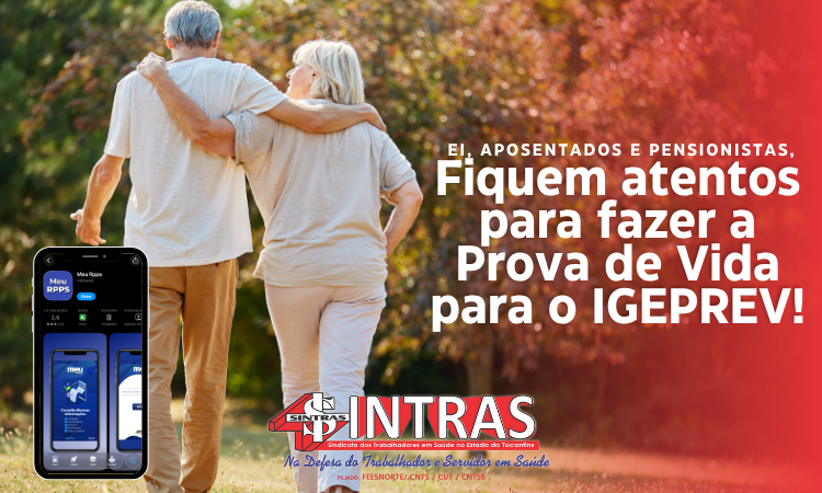 O Sindicato dos Trabalhadores em Saúde no Estado do Tocantins (Sintras) chama a atenção de todos os aposentados e pensionistas da saúde vinculados ao Igeprev para a realização da Prova de Vida 2025. O procedimento é obrigatório e deverá ser feito no período de 3 de novembro a 31 de dezembro, exclusivamente pelo aplicativo MEU RPPS.